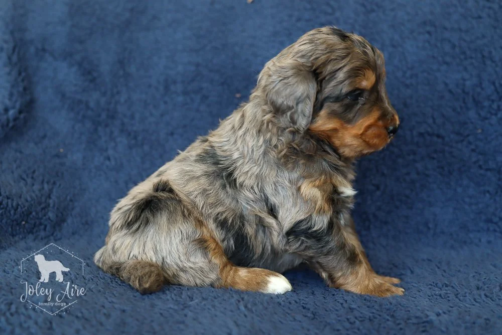 Chevy is a part of our F1 Bernedoodle litter out of Akira and Winston. Born on February 7, 2022, this puppy will be ready to go to it's new home on April 4th. We expect the adult weight of this puppy to be between 60-80 pounds.