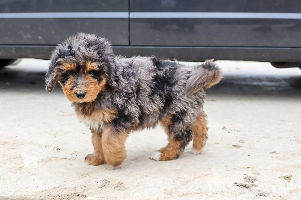 Ferrari is a part of our F1 Bernedoodle litter out of Akira and Winston. Born on February 7, 2022, this puppy will be ready to go to it's new home on April 4th. We expect the adult weight of this puppy to be between 60-80 pounds.