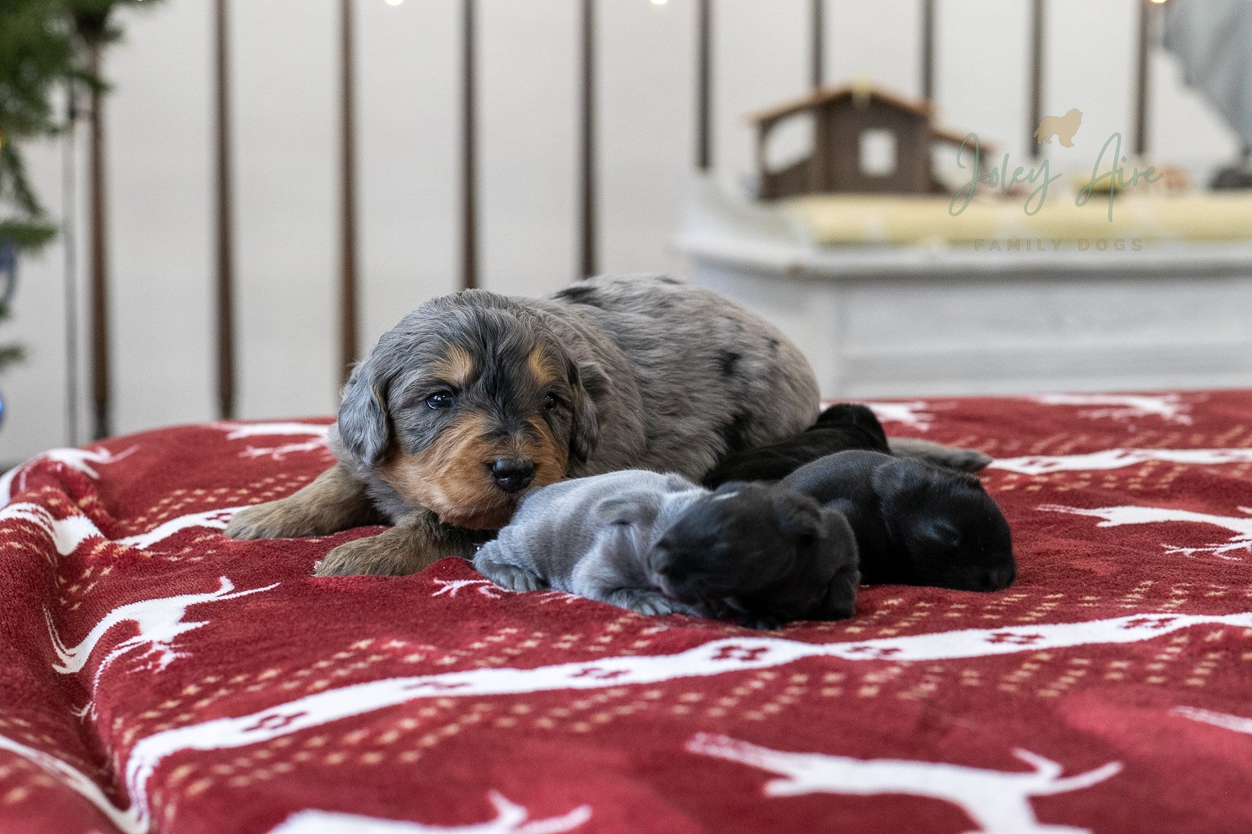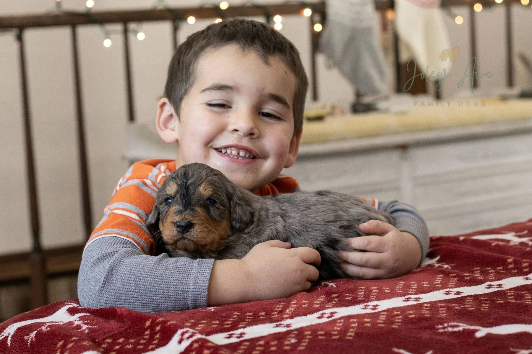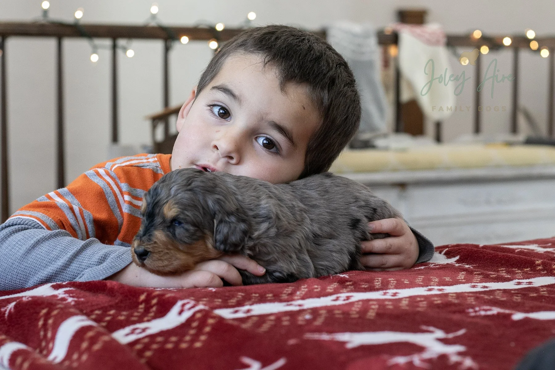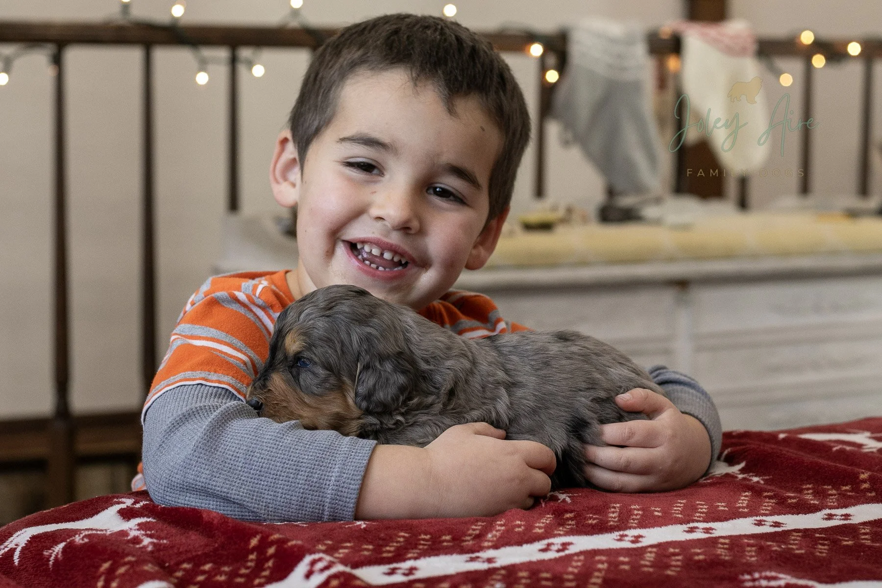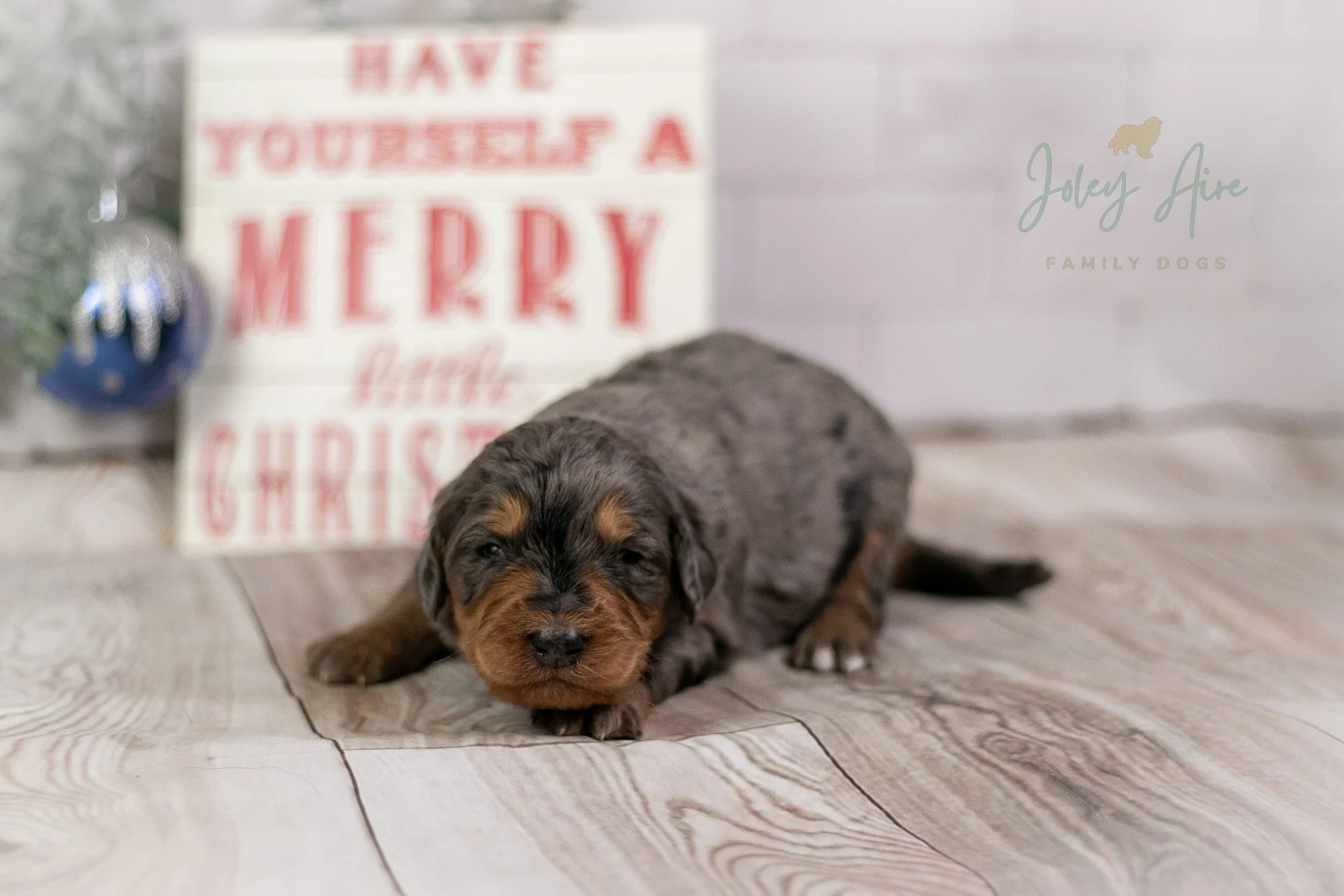 Behold Everest, our majestic male phantom Merle, his coat a tapestry of shadows and light, as bold and captivating as the towering peaks from which he takes his name. This beautiful Bernedoodle pup wears a palette of colors that dance like dawn upon the rugged mountains, drawing the gaze and warming the heart. Within him lies a calm spirit and a gentle soul—a treasure of affection and grace, destined to be your family’s steadfast companion. As he grows, Everest will blossom into a loving guardian, a true reflection of his extraordinary parents, who gifted him their gentle temperament and warm, friendly charm. Raised with tender care and boundless love in our cozy Illinois home, this noble pup will be ready to journey into your life beginning January 10, 2026. We eagerly await the moment Everest becomes a cherished member of your family.