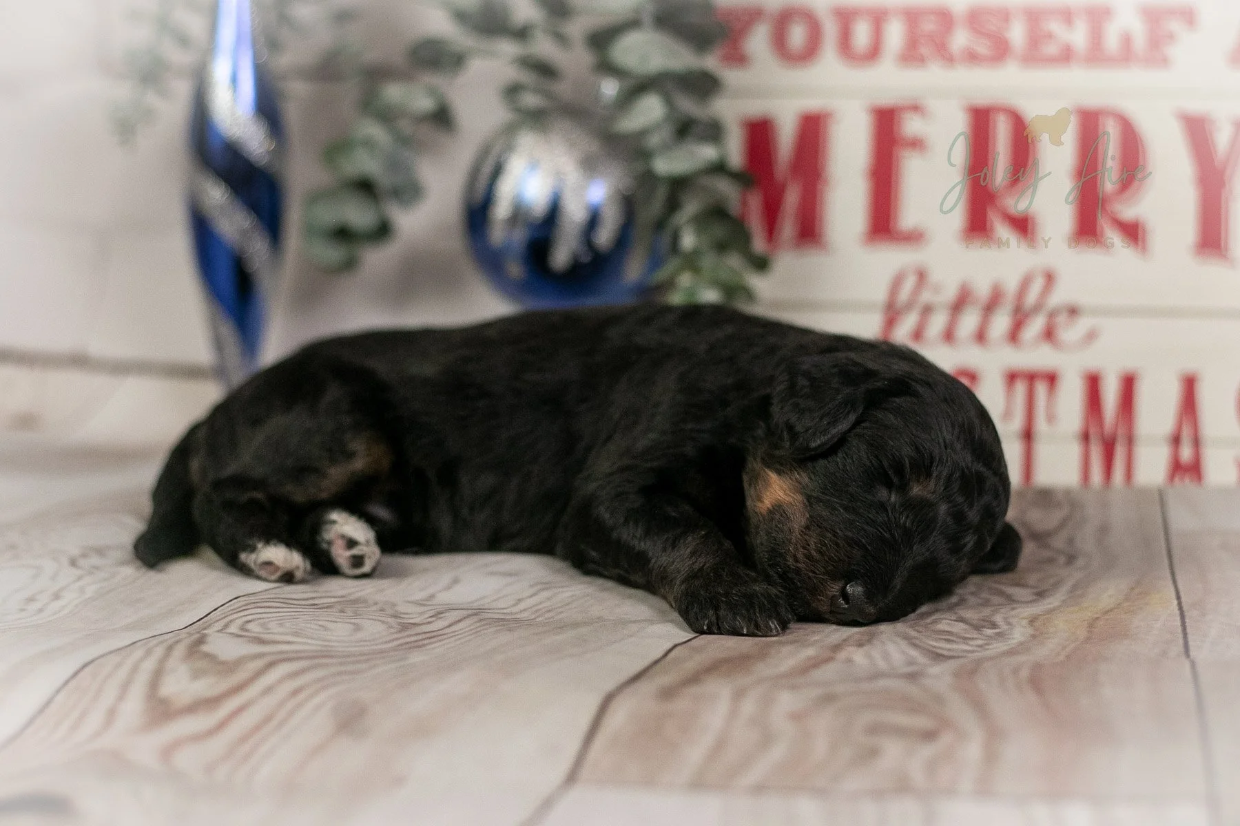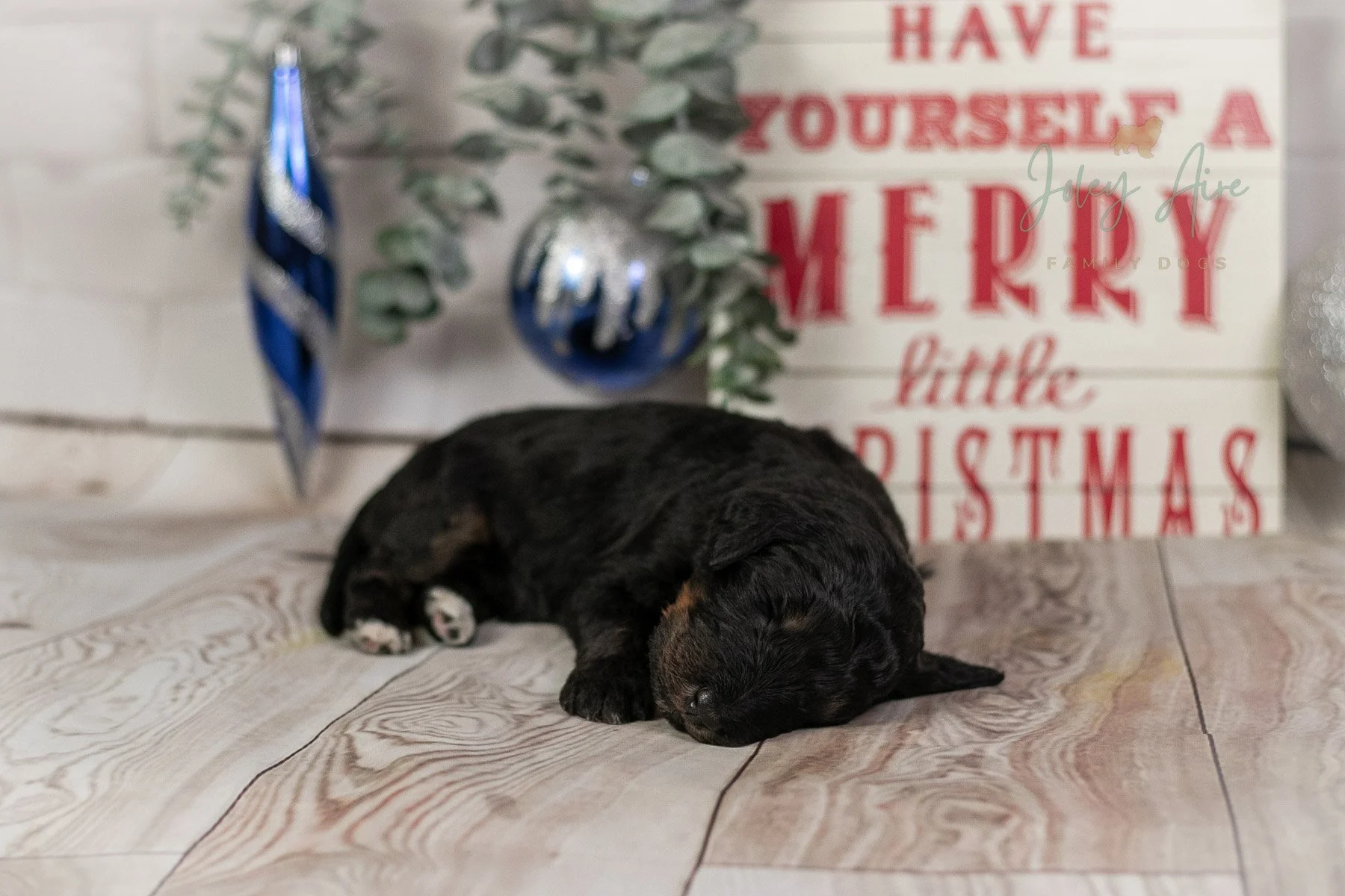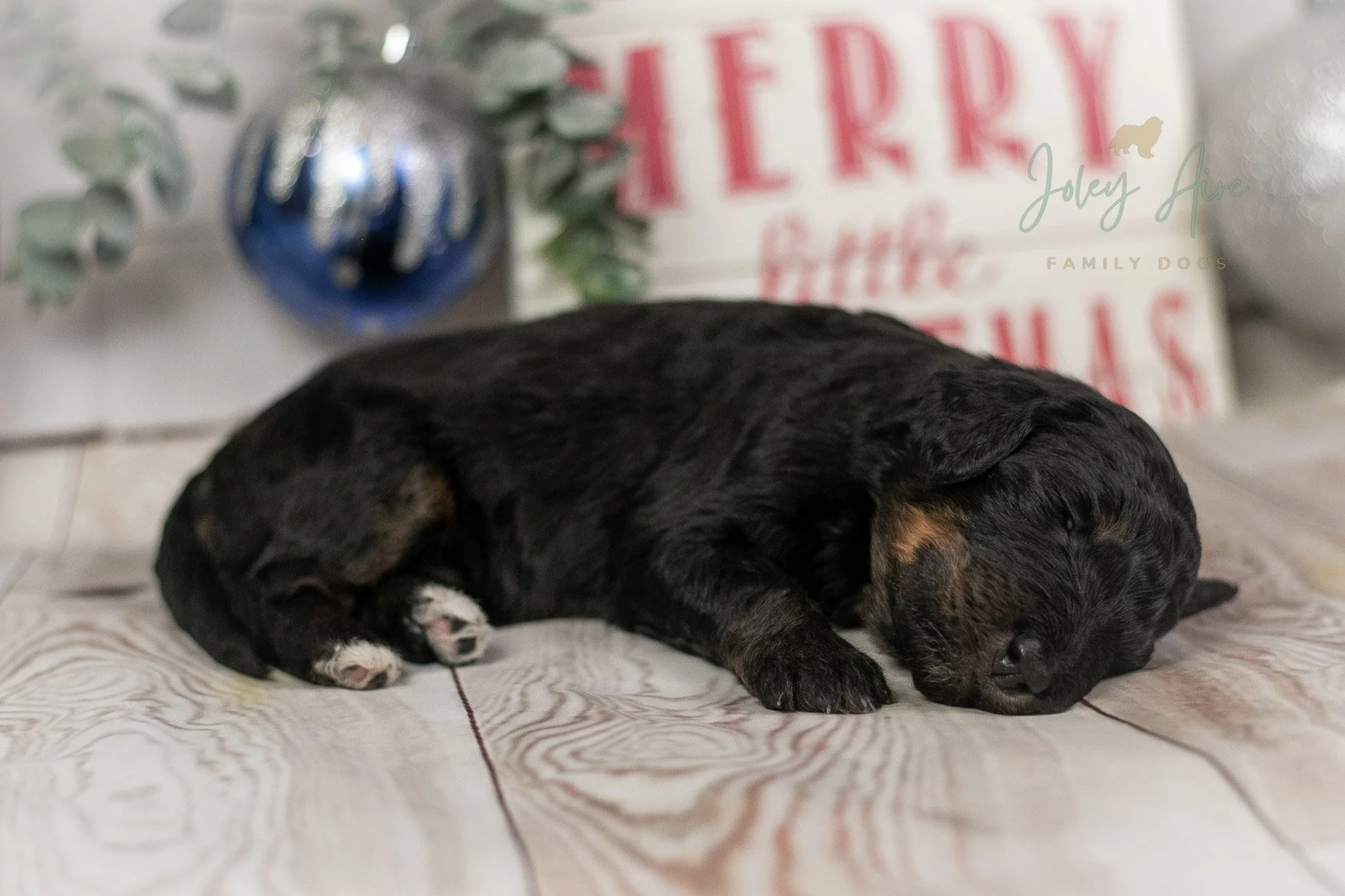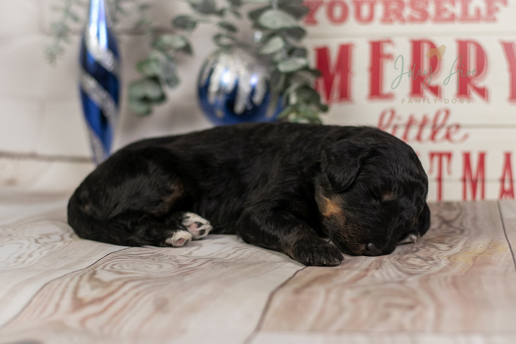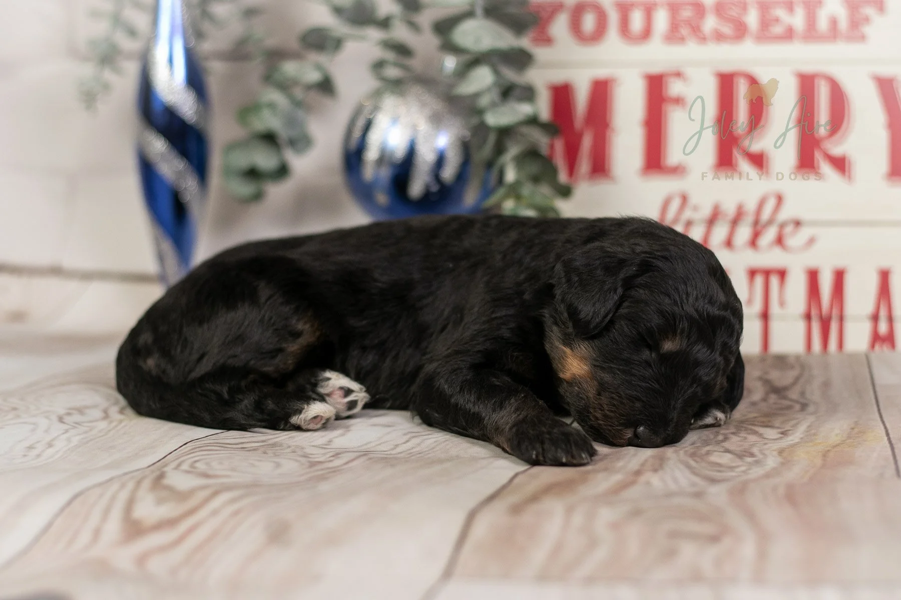 This adorable little boy is a phantom Bernedoodle, a beautiful pup from Winston and Bonnie. His most charming feature is the white-tipped toes on his back feet, adding to his irresistible cuteness. Fitz Roy is expected to grow to a loving 60-80 lbs and will surely inherit the gentle, affectionate temperament of his wonderful parents. Raised with care in our Illinois home, Fitz Roy will be ready to join his new family starting January 10, 2026!