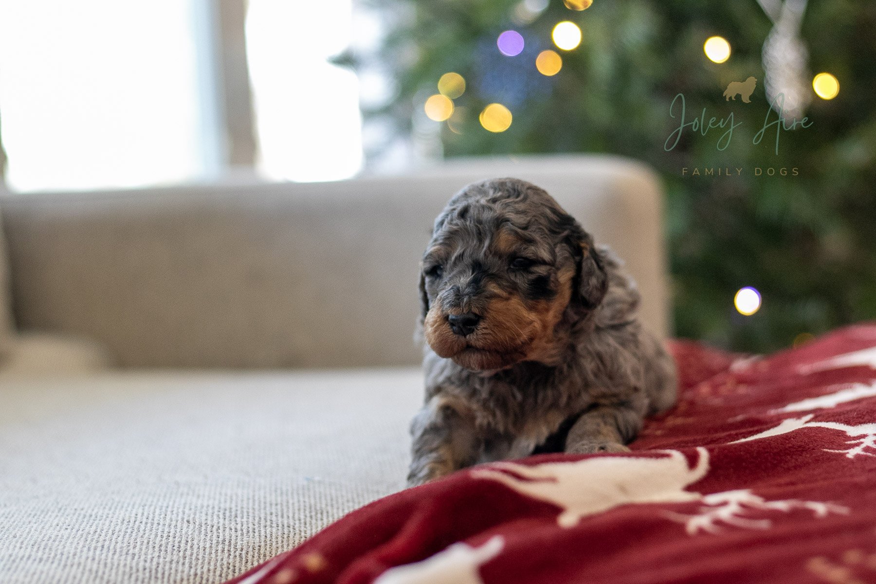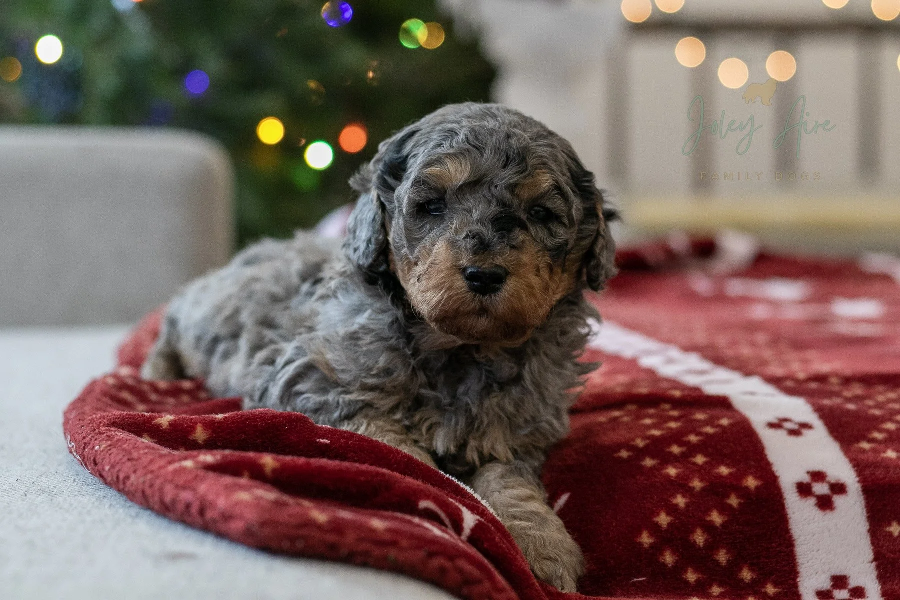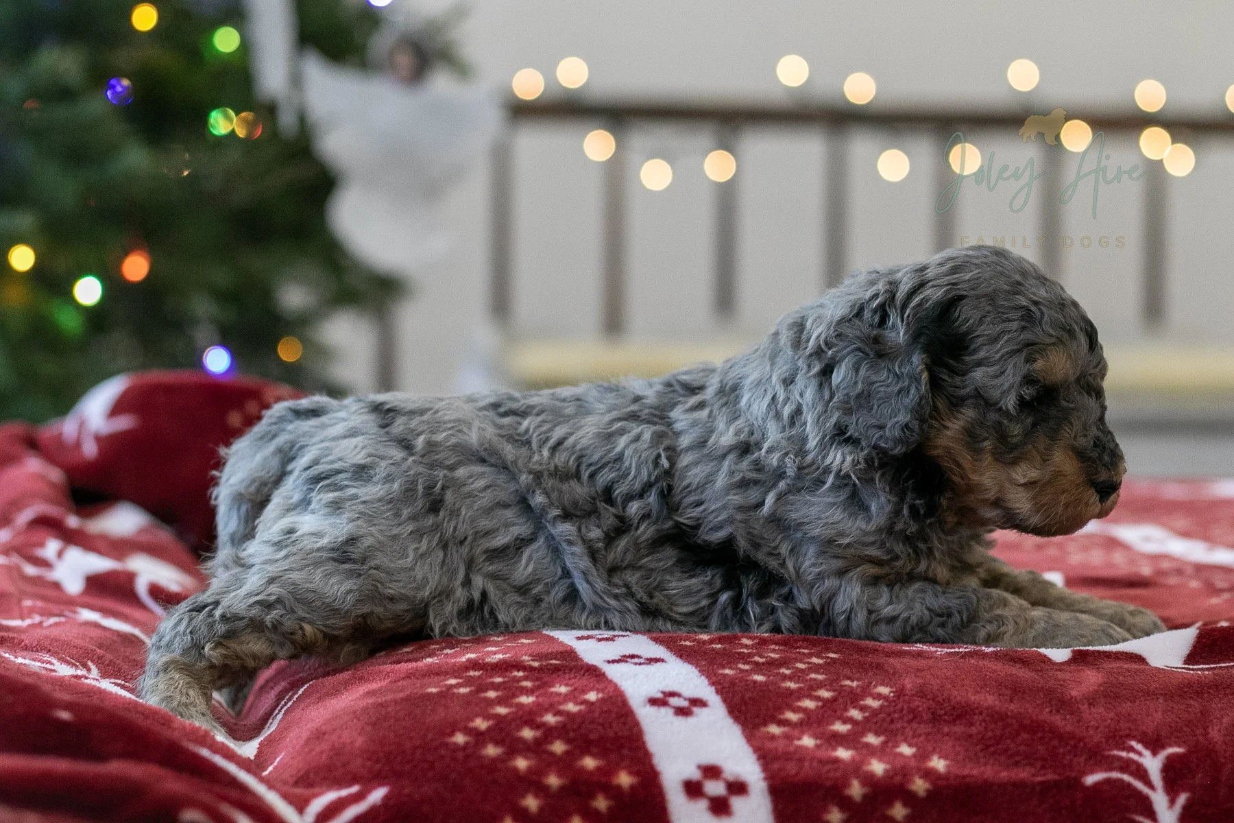 Winston is a purebred, AKC registered small standard poodle and an exciting upcoming stud for our program. His unique coloring is called Blue Merle Phantom. We can’t wait to see what his Bernedoodle puppies look like! Not only is he gorgeous, but his personality is amazing! He’s super sweet and loving!