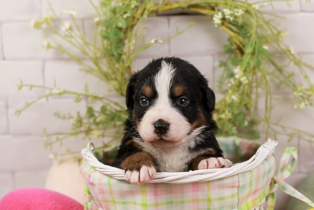 Bonnie is a delightful female Bernese Mountain Dog who captures the hearts of everyone she meets. Although she is on the smaller side for her breed, her beautiful tricolor coat shines with rich browns, glossy blacks, and clean whites, making her stand out in any crowd. What truly sets Bonnie apart, however, is her infectious personality; she is a bundle of joy, always eager to play and share her sweet, gentle nature. Her loving disposition and playful spirit make her a cherished companion, proving that great things can come in smaller packages.