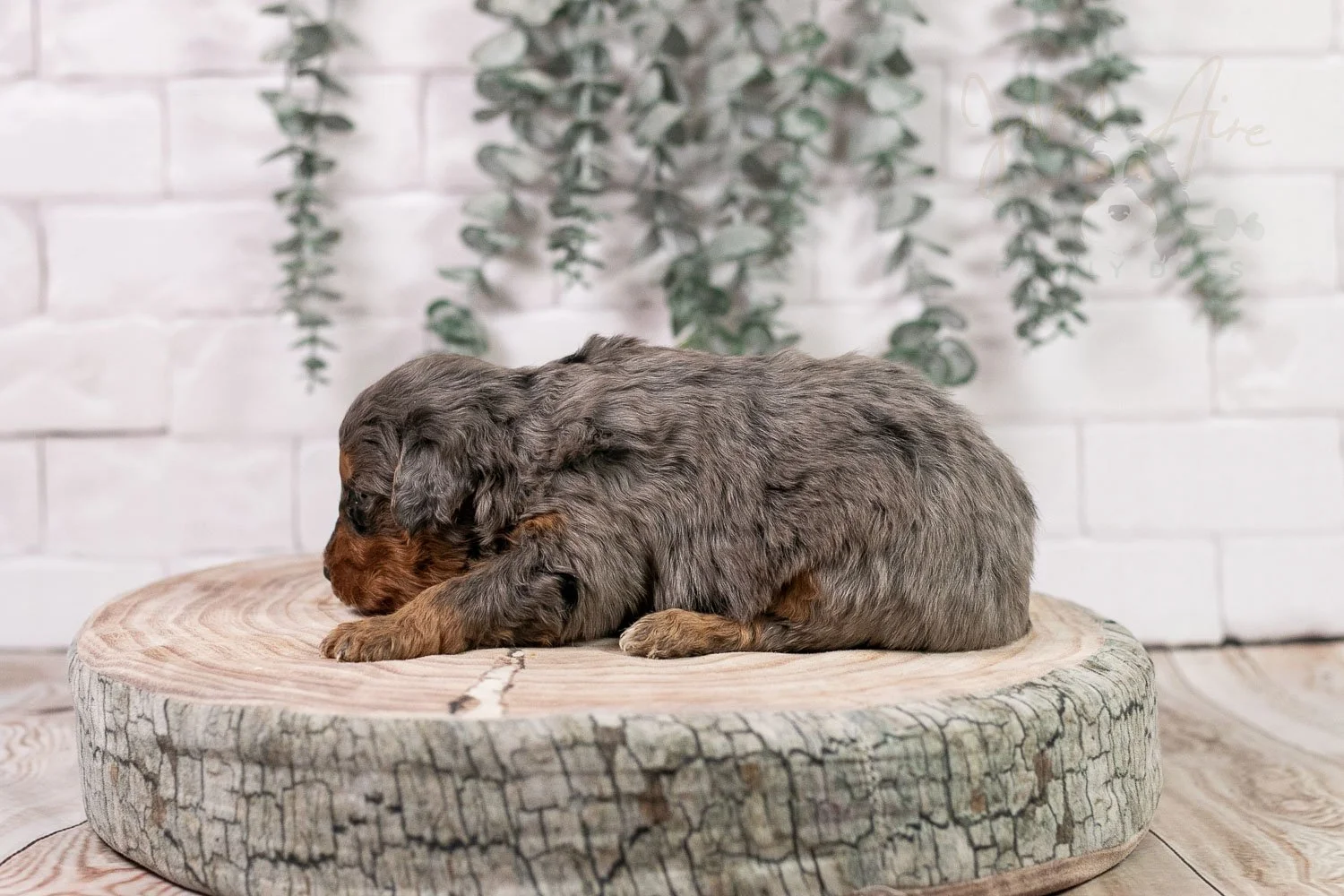 Bernedoodles have beautiful, low-shedding coats—but that beauty comes with a bit of upkeep! Regular grooming is essential to keep their coat healthy and mat-free. We recommend brushing your Bernedoodle at least 2–3 times a week to prevent tangles and scheduling a professional groom every 6–8 weeks.