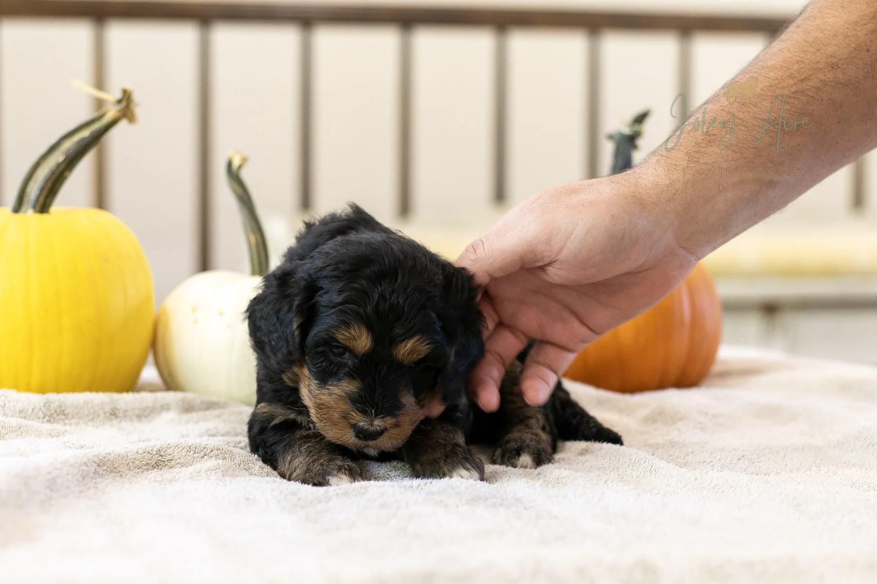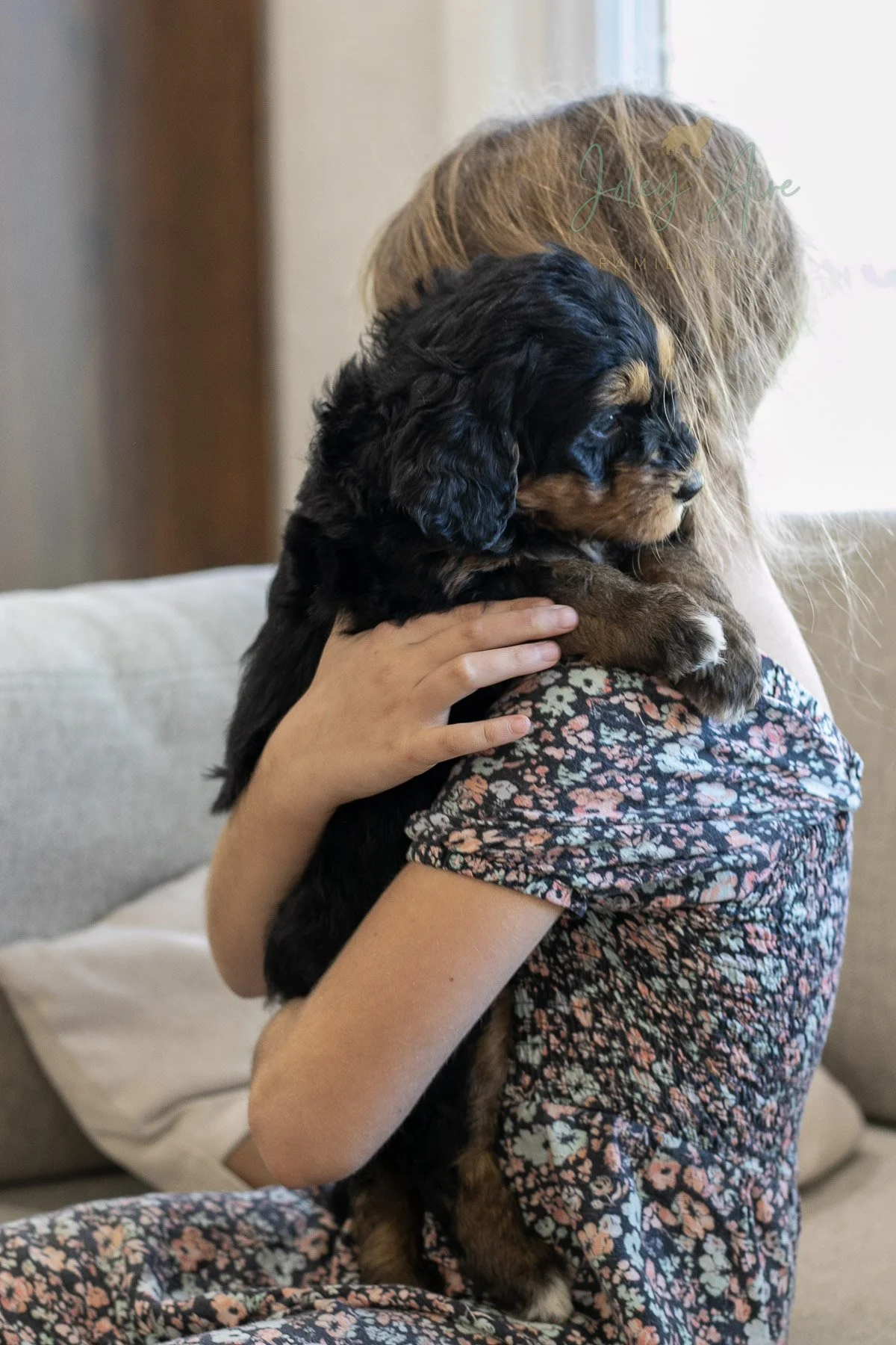 Winston is a purebred, AKC registered small standard poodle and an exciting upcoming stud for our program. His unique coloring is called Blue Merle Phantom. We can’t wait to see what his Bernedoodle puppies look like! Not only is he gorgeous, but his personality is amazing! He’s super sweet and loving!
