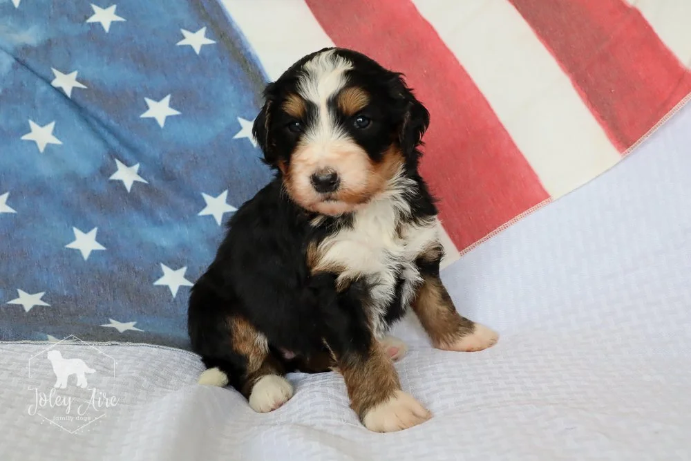Louisiana is a part of our F1 Bernedoodle litter out of Denali and Winston. She was born on January 15th, 2022 and will be ready to go to her new home on March 12th. She is expected to grow to be between 80-100 lbs as an adult.